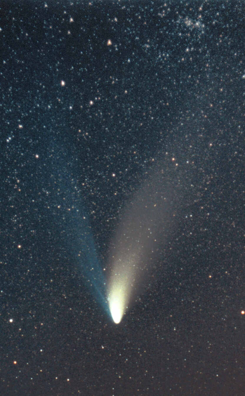 April 6, 1997, 8:00 pm at dark site 100 mi east of Denver, CO. Shot with a 50 mm lens at f/2.0, 50 second exposure on hypered Fuji 800. Note the Double Cluster in Perseus at top right. By John Notar.